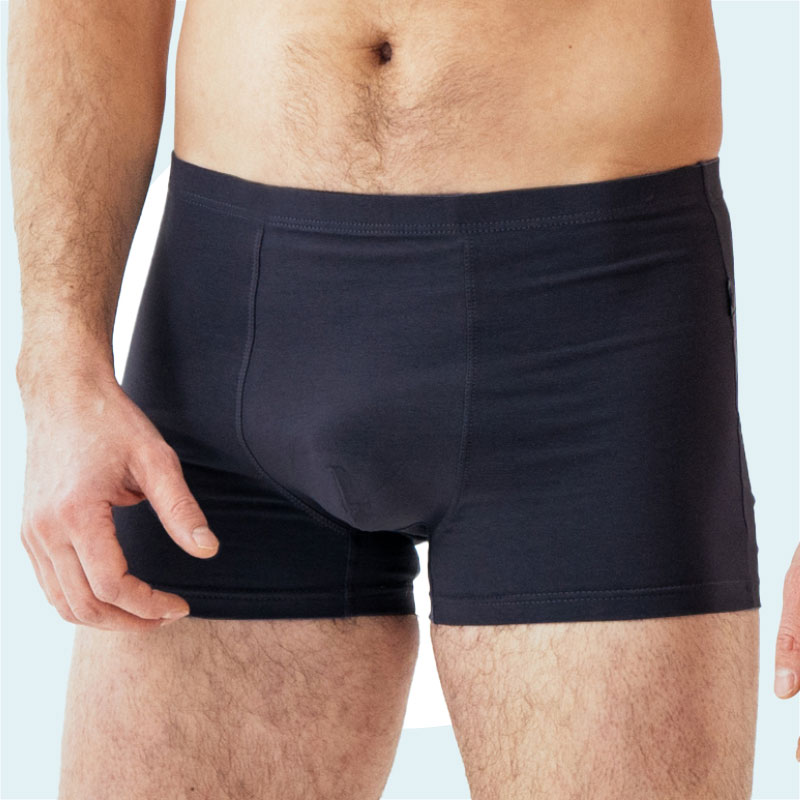 Le Boxer absorbant Biomédi est un sous-vêtement pour les hommes concernés par des fuites urinaires. Il est discret et ressemble à un boxer classique, sauf qu’il est absorbant et imperméable, tout en restant confortable et respirant. Il est garanti anti fuite grâce à sa protection invisible intégrée dans les différentes couches de tissus.