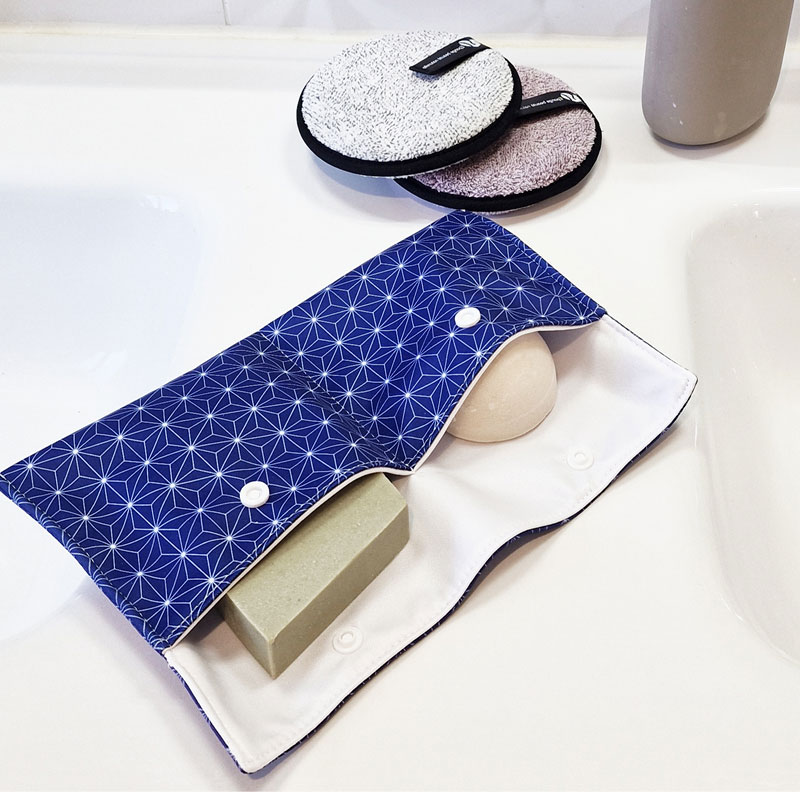Cette pochette pour savon permet d’éviter le dessèchent trop rapidement des cosmétiques solides. Sa fermeture à rabat laisse passer l’air pour permettre le séchage du savon. Et un savon bien au sec est un savon qui dure !