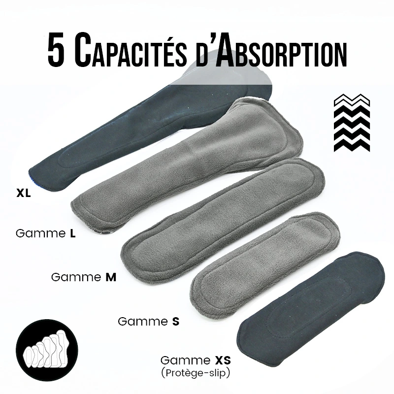 - Charbon : Effet “au sec” immédiat et absorption rapide – idéale pour les flux abondants.