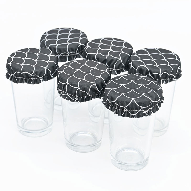Ce lot de 6 couvercles en tissu pour verrine servira pour garder au frais vos préparations apéritifs ou desserts réalisées en verrine.