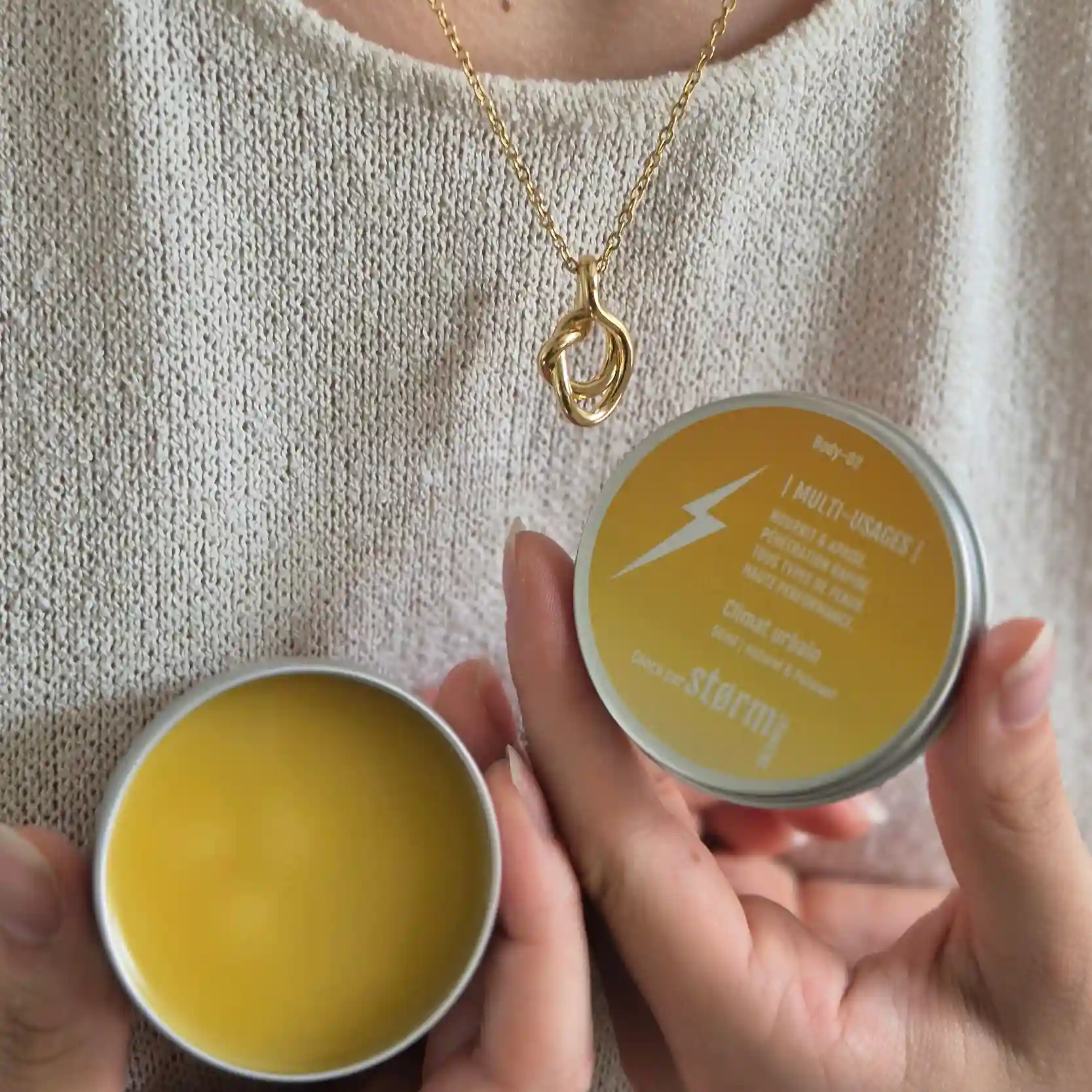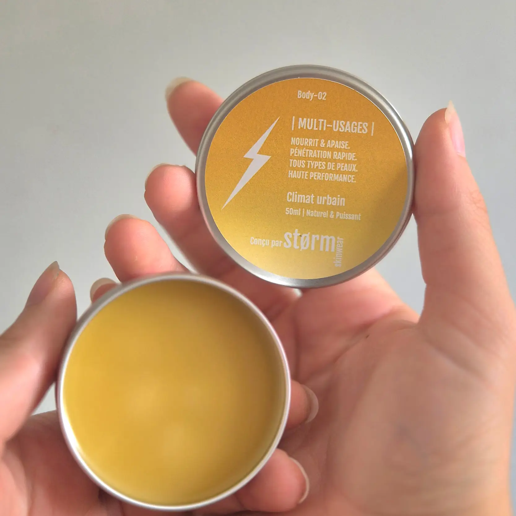 Storm Skinwear est une marque française basée dans les Ardennes. Créée en 2023 à partir d’un réel besoin personnel de la fondatrice, elle propose des produits de soin du corps naturels contre les frottements et les irritations de la peau. Engagée et portant de fortes valeurs, la marque met en avant ses produits naturels respectant des valeurs de naturalité, environnementales et sociales. Storm travaille en étroite relation avec ses producteurs français et malgaches et ambitionne de dynamiser les régions et les populations en sous développement. Storm Skinwear, c’est ça : une peau protégée, un esprit libéré, et une vie en mouvement grâce à des produits créés à partir de matières naturelles, sourcées et éthiques.