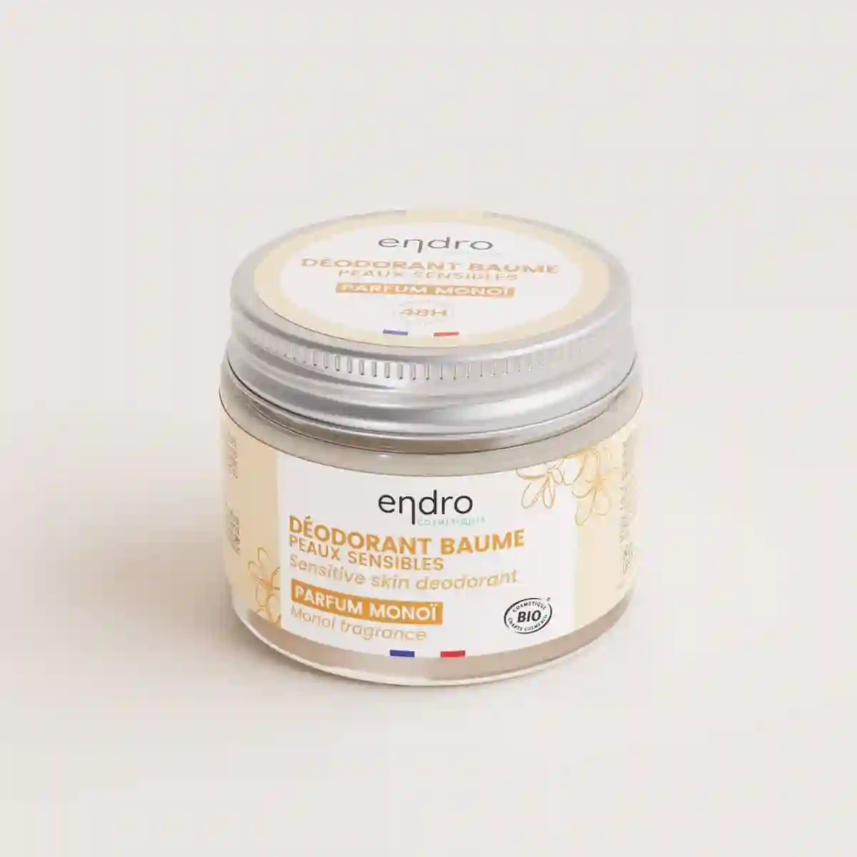 Monoï : pour peaux sensible, formule toute douce, sans bicarbonate et sans huiles essentielles. N’irrite pas les aisselles.