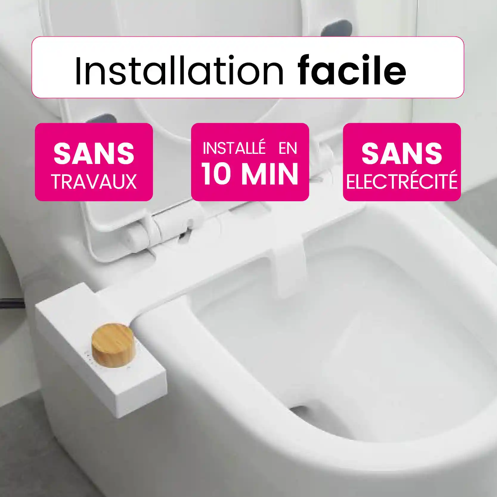Installez facilement le système de bidet entre votre cuvette et votre abattant (aucun outil spécial nécessaire).