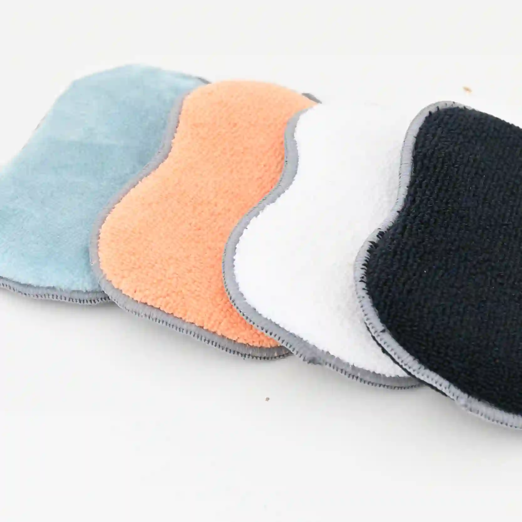 • Éponges lavables : une avec face grattante pour les tâches tenaces et une douce pour les surfaces délicates comme la robinetterie.