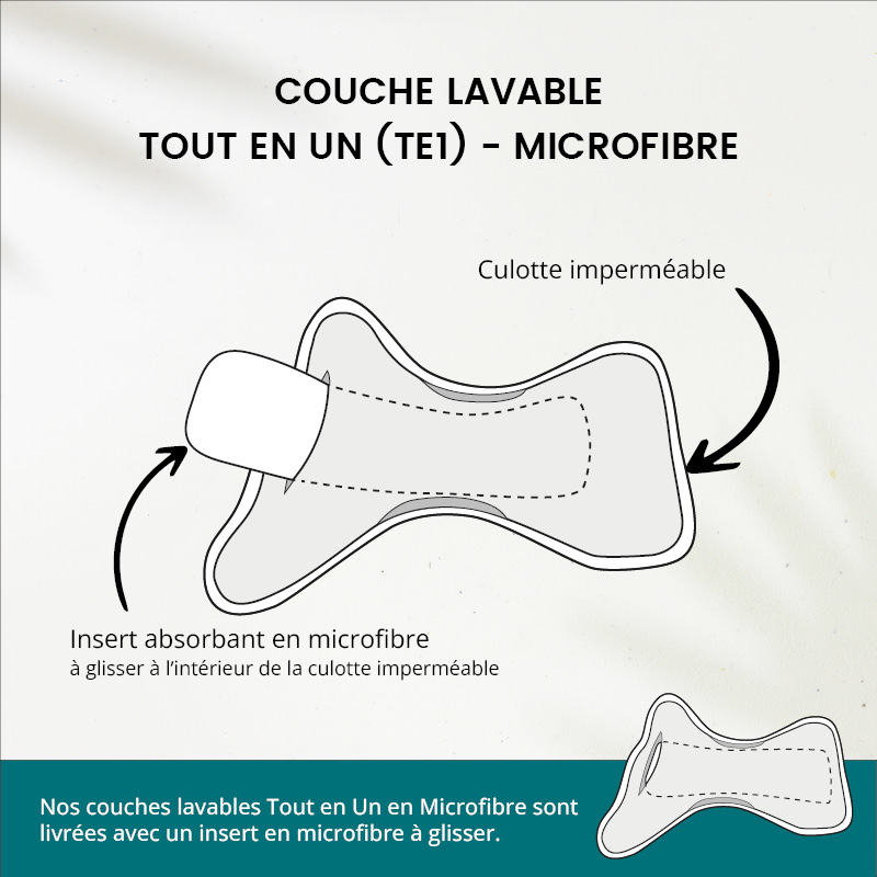 La couche tout en un en microfibre se différencie de celle en bambou par sa légèreté et rapidité de séchage.