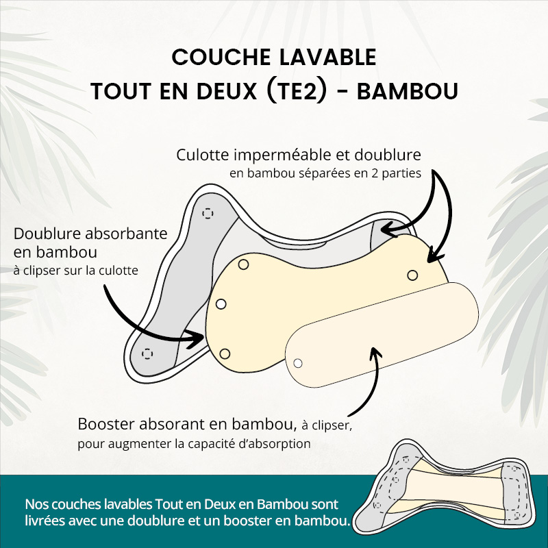 D’explorer sans vous tromper : Chaque couche fonctionne différemment. En testant une TE1 bambou, une TE1 microfibre et une TE2 bambou, vous comprenez immédiatement ce qui vous convient le mieux en termes d’absorption, de rapidité de séchage, de praticité ou de modularité.