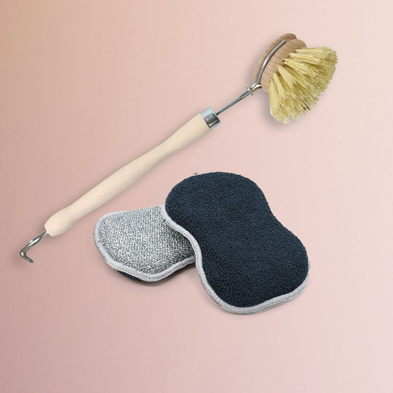 Kit vaisselle : 1 brosse et 2 éponges réutilisables et lavables