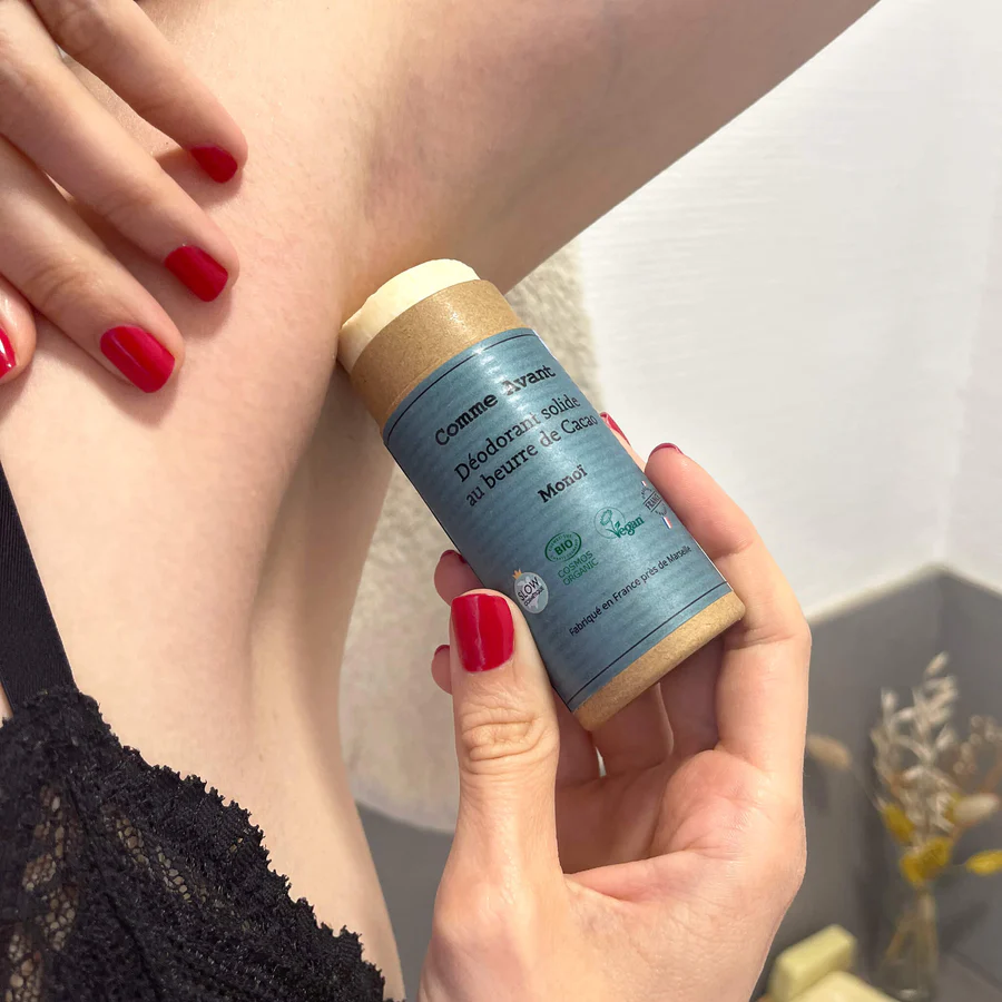 - Le déodorant solide Comme Avant aide à limiter les odeurs corporelles et se présente dans un format facile à appliquer.