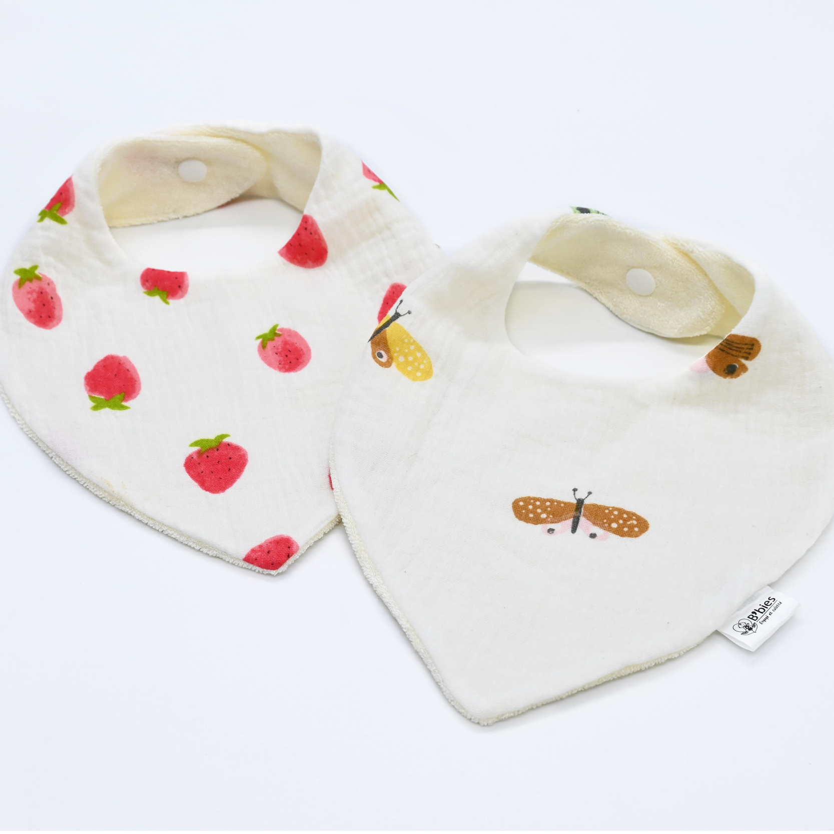 Lot de 2 bavoirs bandanas, idéal salive poussée dentaire – Gaze de coton et bambou – A choisir
