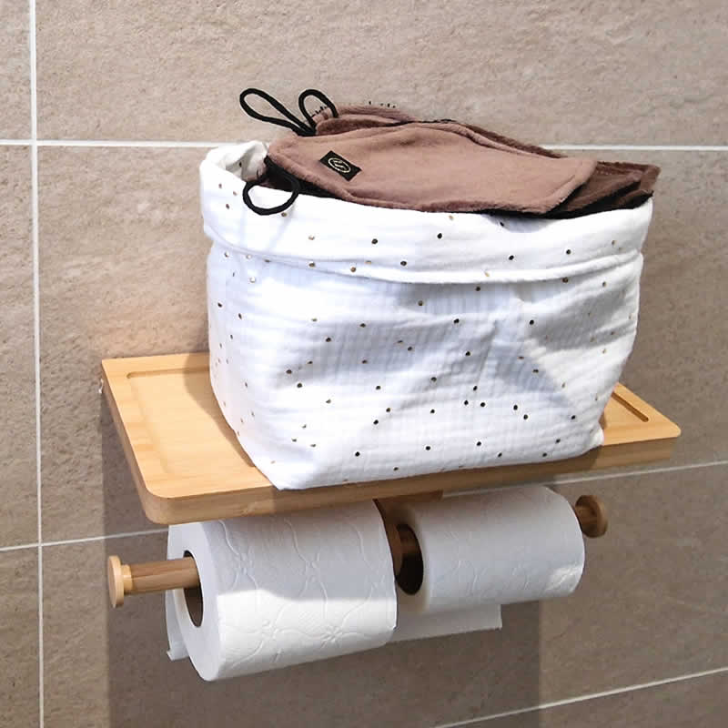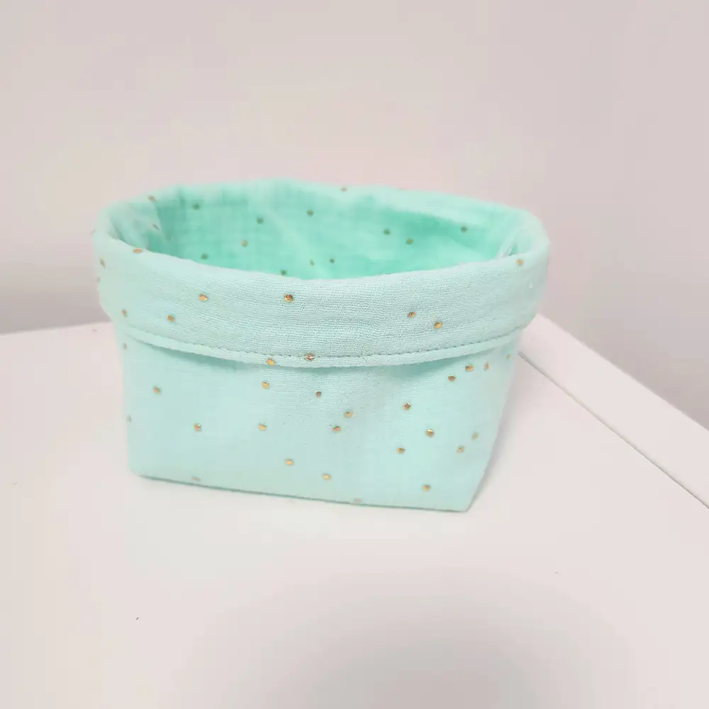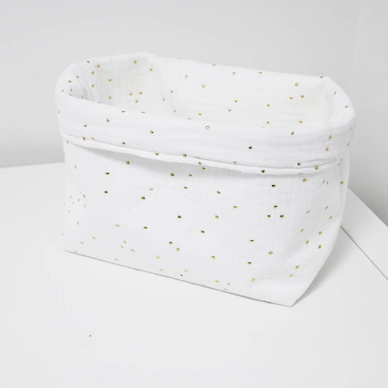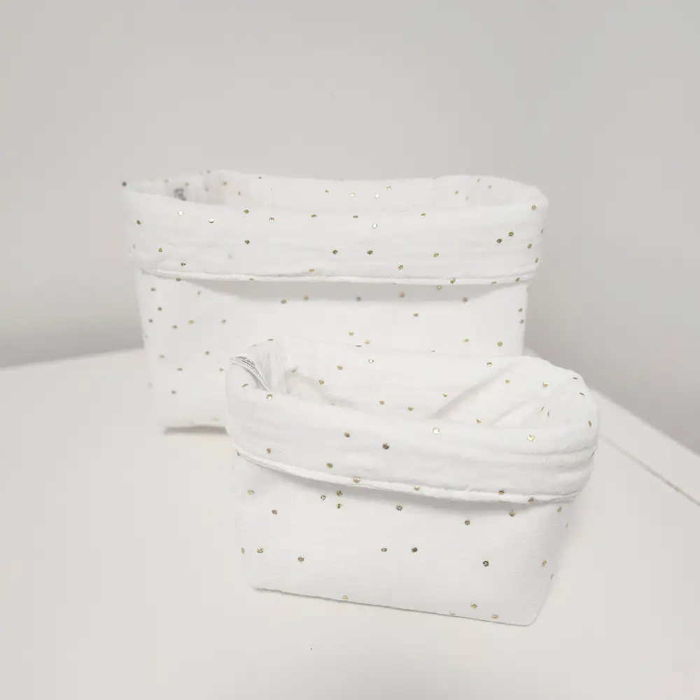 Ces panières à pois dorés sont idéales pour organiser vos tiroirs ! Parfaites pour ranger des lingettes lavables pour bébé ou des cotons démaquillants, mais aussi vos produits de beauté et votre skincare routine, elles gardent vos essentiels bien ordonnés.