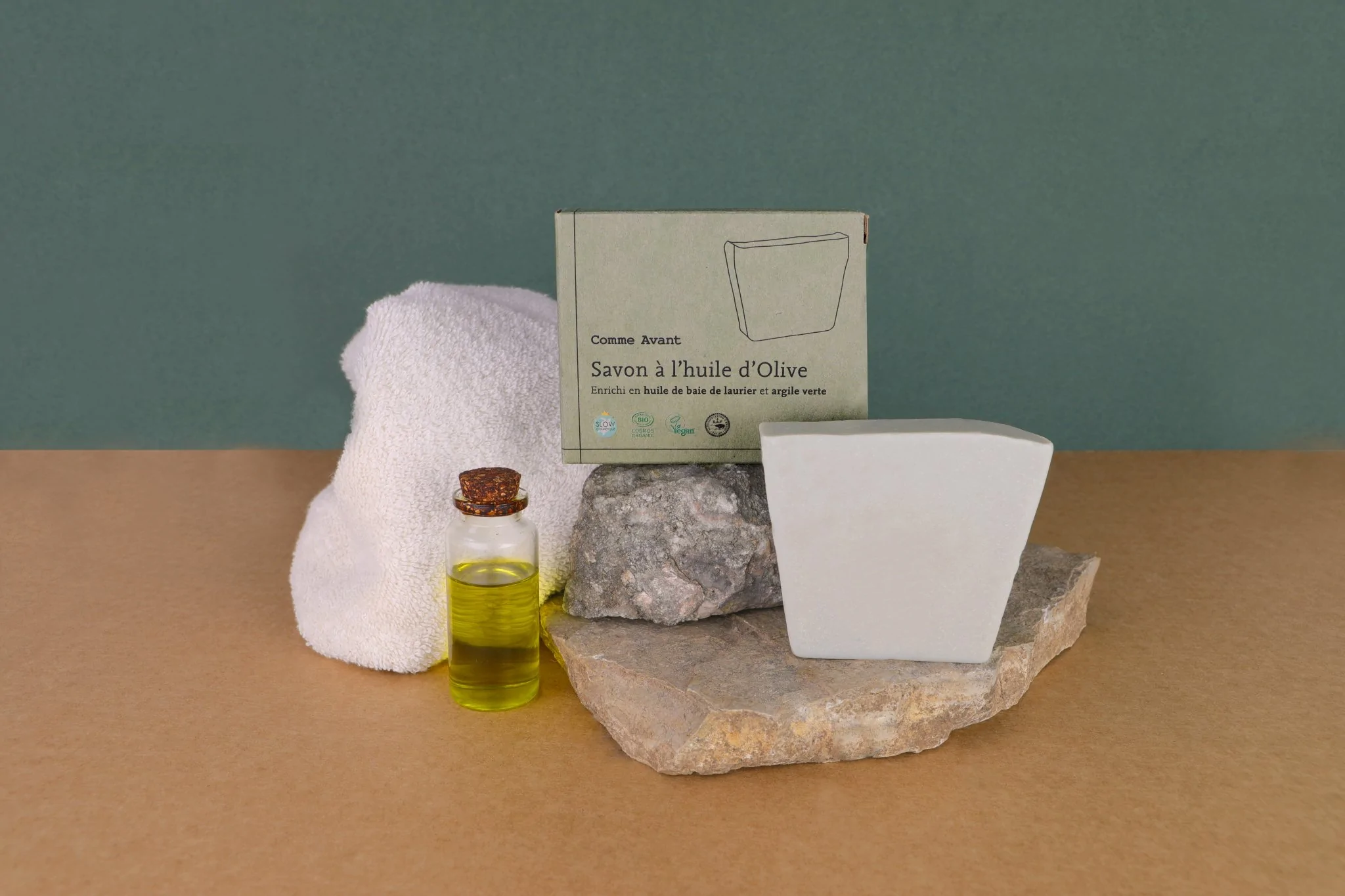 Le savon à l’huile d’olive se décline en une version spécifiquement adaptée aux peaux à imperfections. Toujours saponifié à froid ce savon a été enrichie en huile de baies de laurier et argile verte. Deux ingrédients choisis pour leur propriétés purifiantes et apaisantes.
