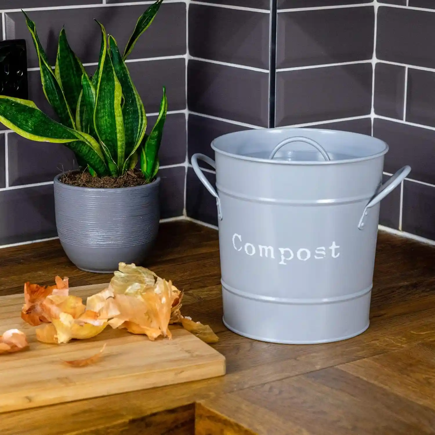 Seau à compost de cuisine – Intérieur amovible – Gris