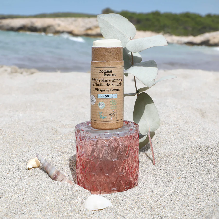 Découvrez le Stick Solaire à l’Huile de Karanja de Comme Avant, une protection haute performance SPF50, sans dioxyde de titane ni ingrédients controversés. Grâce à son unique filtre minéral, il est spécialement conçu pour les peaux sensibles, offrant une protection à large spectre contre les UVA et UVB. Convient dès la naissance, ainsi qu’aux femmes enceintes et allaitantes.