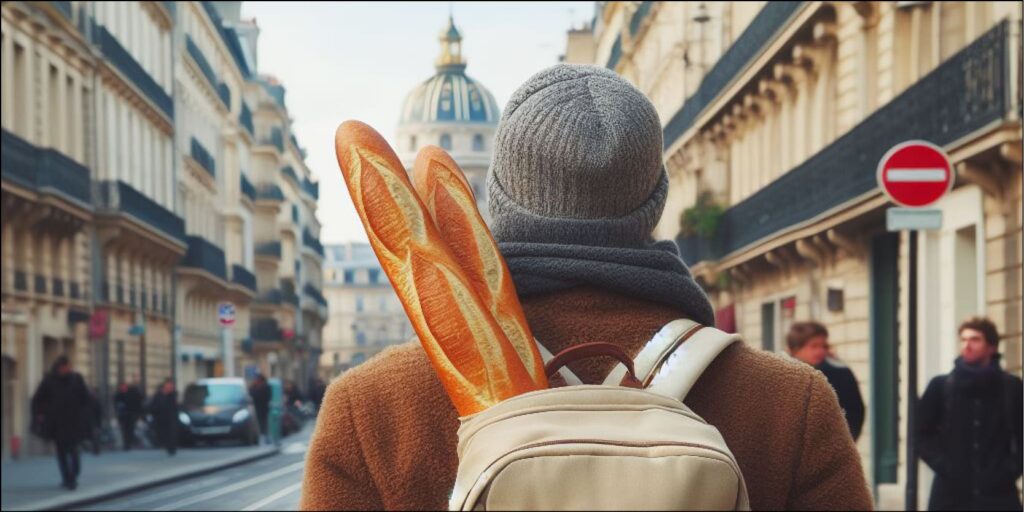 Tel un samouraï prêt à dégainer son sabre, votre baguette est là ! à portée de main, calée dans votre dos. D’ailleurs, un petit coup de baguette pour se défendre, si on l’a demandée bien cuite, ça peut faire l’affaire 🙂 non ?